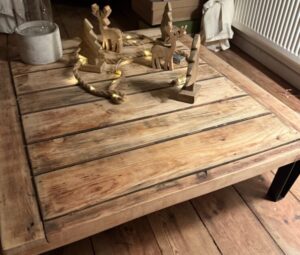 Wie dieser tolle Couchtisch, der einmal eine Schuppentür war: